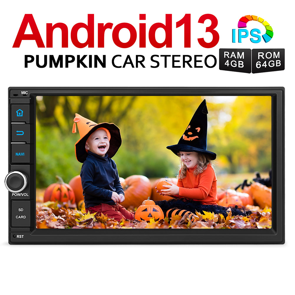 Pumpkin 7 Zoll Doppel-DIN Android 13 Integrierte Carplay Autoradio mit Navi Bluetooth(4GB+64GB)