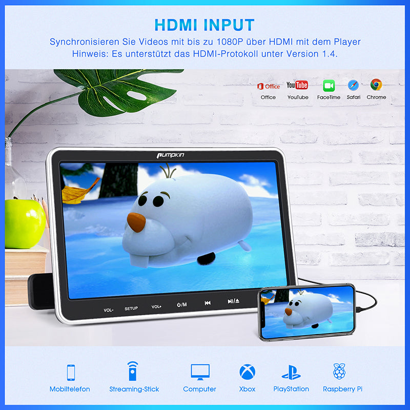 - Unterstützt HDMI-Eingang: Der Player können bis zu 1080p-Videos von Ihrem Handy, Computer, Kamera, Raspberry Pi, PS4 / Xbox / Switch oder Firestick usw. synchronisiert werden. (Unterstützt das HDMI-Protokoll unter Version 1.4.)