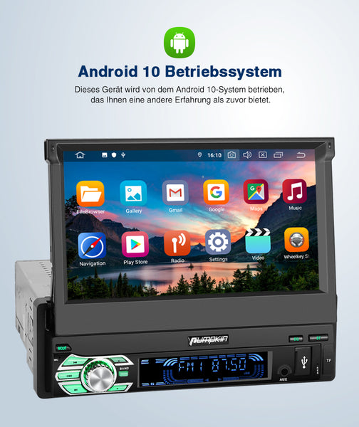 Pumpkin 7 Inch 1 Din Quad-Core Android 10 Radio with Foldable Screen 2GB RAM 32GB ROM, Supports Bluetooth Android Auto CarPlay DAB+