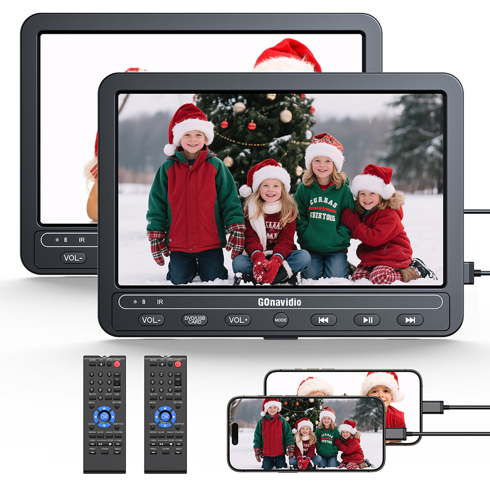 - Car DVD Player with 2 Screens : Either playing 2 different movies or the same on both screens, which can easily meet the needs of children of different ages.