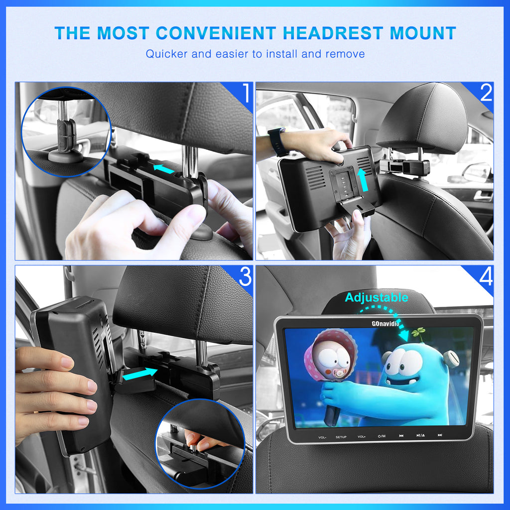 - Kompatibel mit mehreren Formaten: Der Auto-Kopfstützen-DVD-Player verfügt über einen USB- und einen TF-Kartensteckplatz und unterstützt eine Vielzahl von Medienformaten, darunter VOB, AVI, MPEG 1/2, XVID, MPG, 3GP, MP3, WMA, JPG und JPEG (bis zu 32 GB im FAT32-Format). Perfekt für eine ruhige Fahrt mit Kindern.