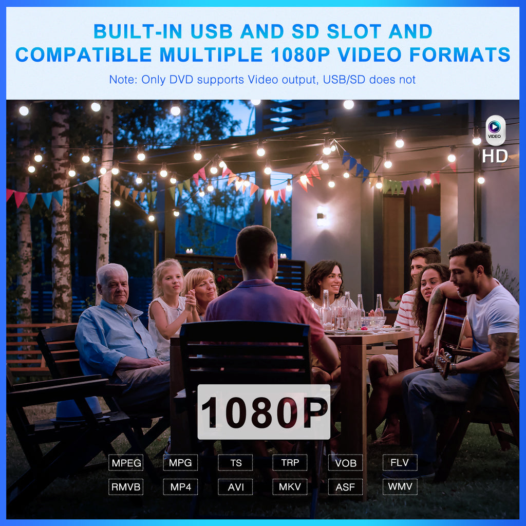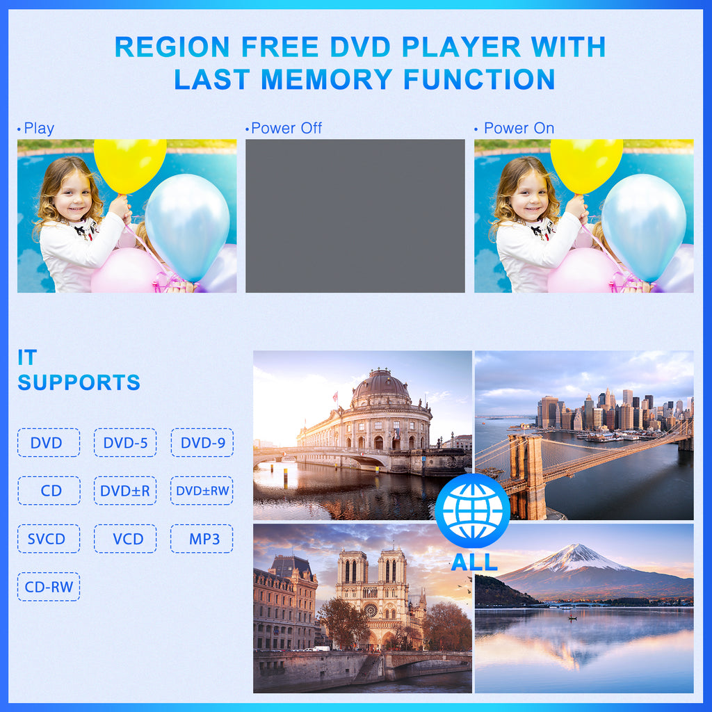 - Keine Regionssperre: Genießen Sie grenzenloses Filmvergnügen! Der DVD-Player ist regionsfrei und unterstützt verschiedene Formate wie CD, DVD, CD-R/RW, DVD-R/+R, DVD+RW/-RW, VCD und SVCD. (Blu-ray-Discs werden nicht unterstützt.)
